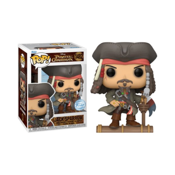This Pop! Jack Sparrow is captured as he first appears in the film, drifting up to the dock on a sinking ship. The madest and most brilliant pirate is in search of the Black Pearl. Will you board the commandeered ship and join Pop! Jack Sparrow in his voyage?
